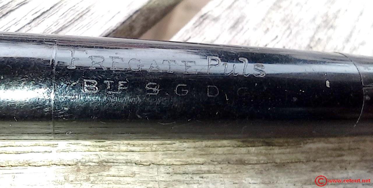 – Corps plastique (celluloïd?) noir . inscription “FREGATE Puls” suivi de “Bte S.G.D.G”