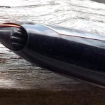 – Bloc plume plastique (celluloïd?) noir. Un carénage métallique recouvre une partie de cette section.