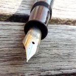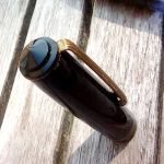 – Capuchon plastique (celluloïd?) noir . Clip métal doré avec cannelures longitudinales. Une bague métal doré à la base.