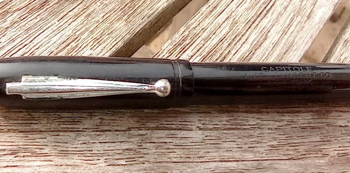 – Corps Celluloïd(?) Noir. Il est gravé dans la matière: « CAPITOLE puis « AIKEN LAMBERT Co » puis « NEW YORK » puis « UNITED STATES AMERICA ».
