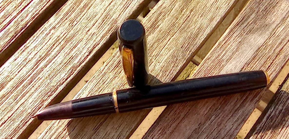 – Bloc plume Celluloïd noir. Plume WATERMAN. plume carénée.