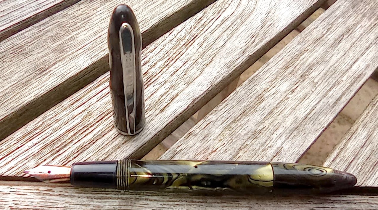 – Capuchon en Galalithe VERT MARBRE. Clip métal à la base. Bon état global.