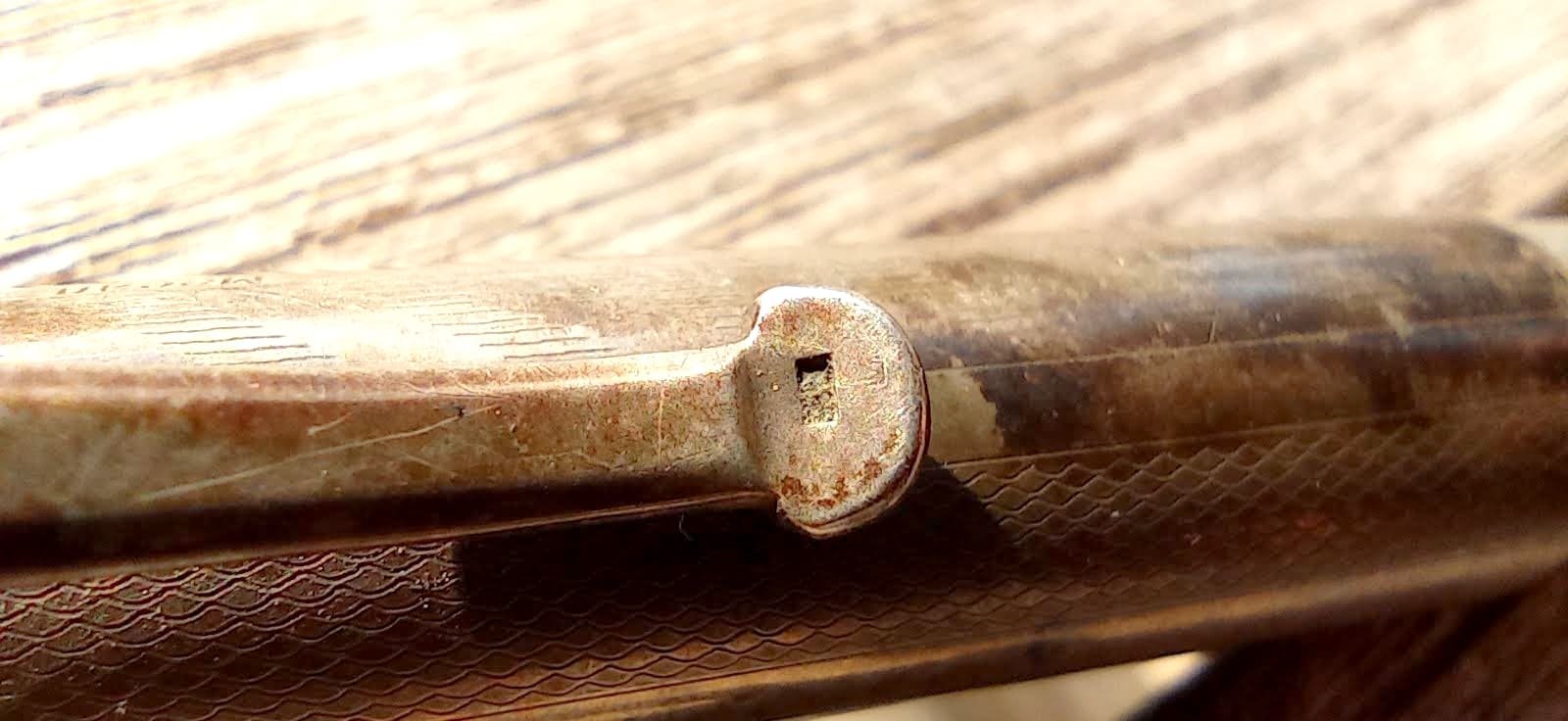 – Corps Métal ARGENT avec poinçons (idem) . Capot pour bouton en ébonite noire.
