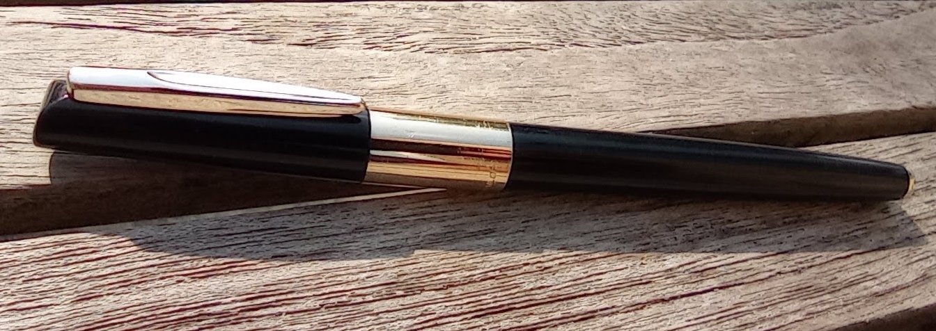 – Capuchon Celluloïd ou résine(?) noire et Métal doré. Inscription « SAILOR » en base du capuchon sur une large bague en métal doré.