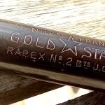 – Corps Ébonite noire un peu décolorée avec motifs chevrons. Il est gravé dans le corps : « MANUFre FRANCAISE puis GOLD (etoile) STARRY suivi de “RAPEX N°2 Bts J. CARRE » . Un bouchon dévissable avec gravure (3 cercles de points) pour prise en main (le bouchon est partiellement ébréché mais n’empêche pas la prise de la barre de pression interne).