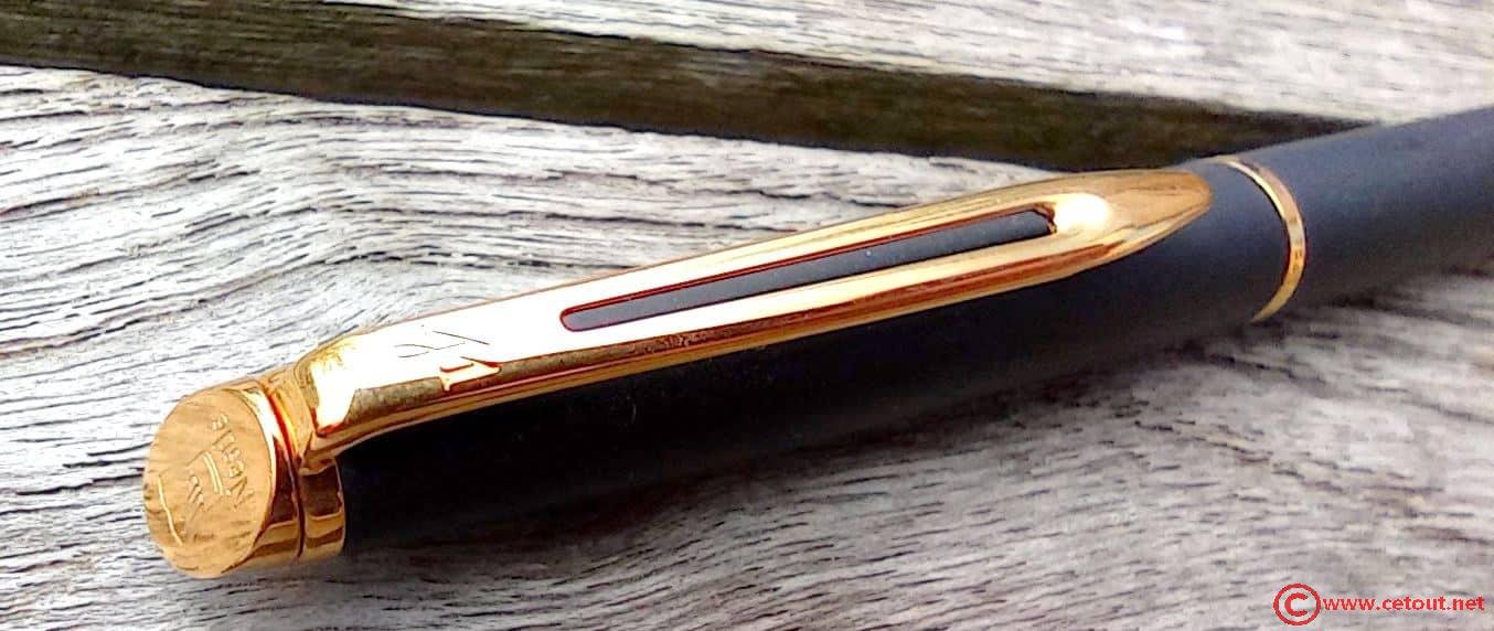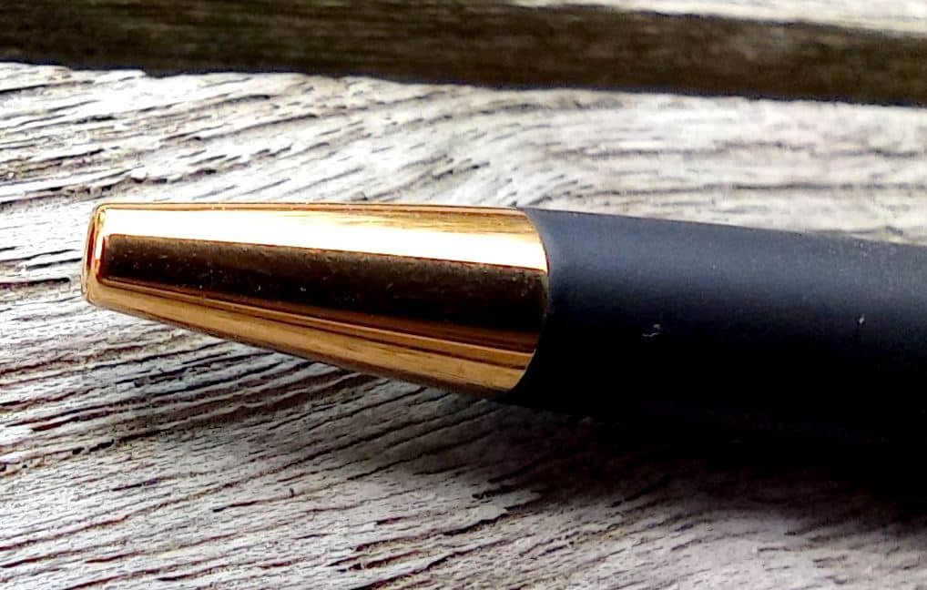 - Corps en plastique noir mat. bague dorée en extrémité inférieure