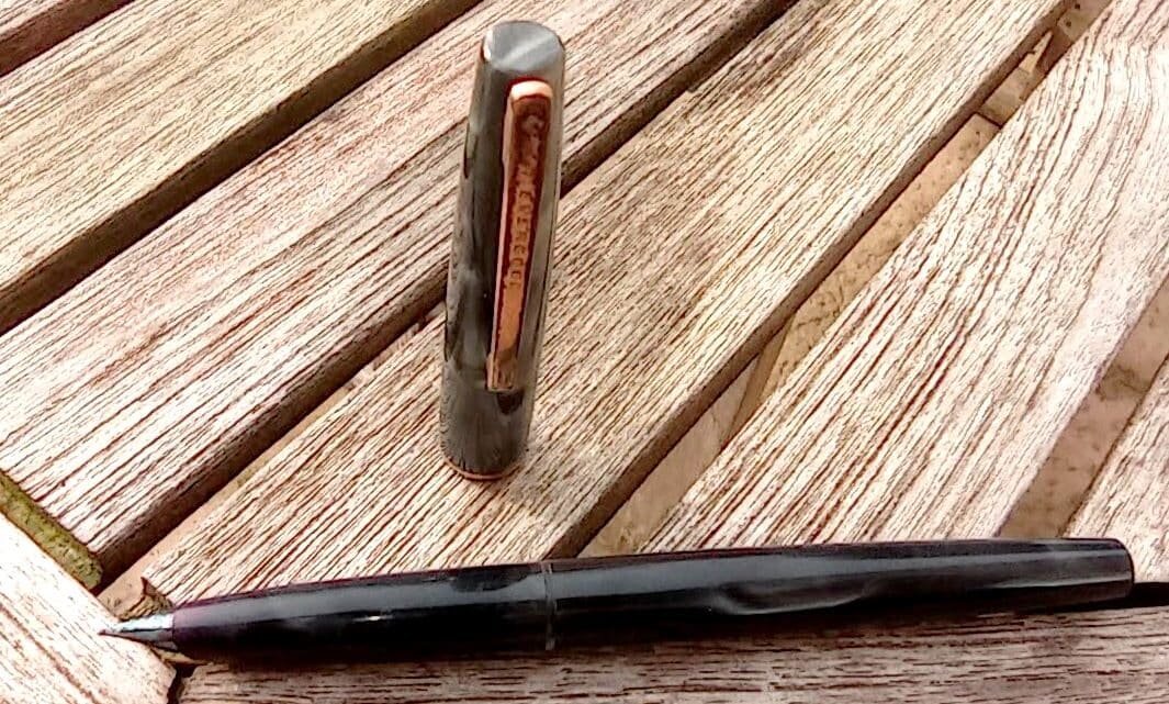 Section (celluloid?) noire avec plume couleur dorée (à nettoyer)