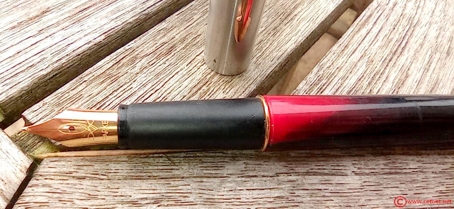 DANS SON JUS : STYLO PLUME PARKER FRONTIER ACIER ET MARBRE ROUGE – MADE IN USA