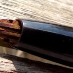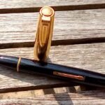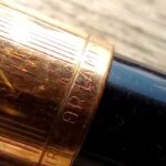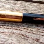 – Bloc plume résine noire. Plume dorée très probablement d’origine WATERMAN carénée.