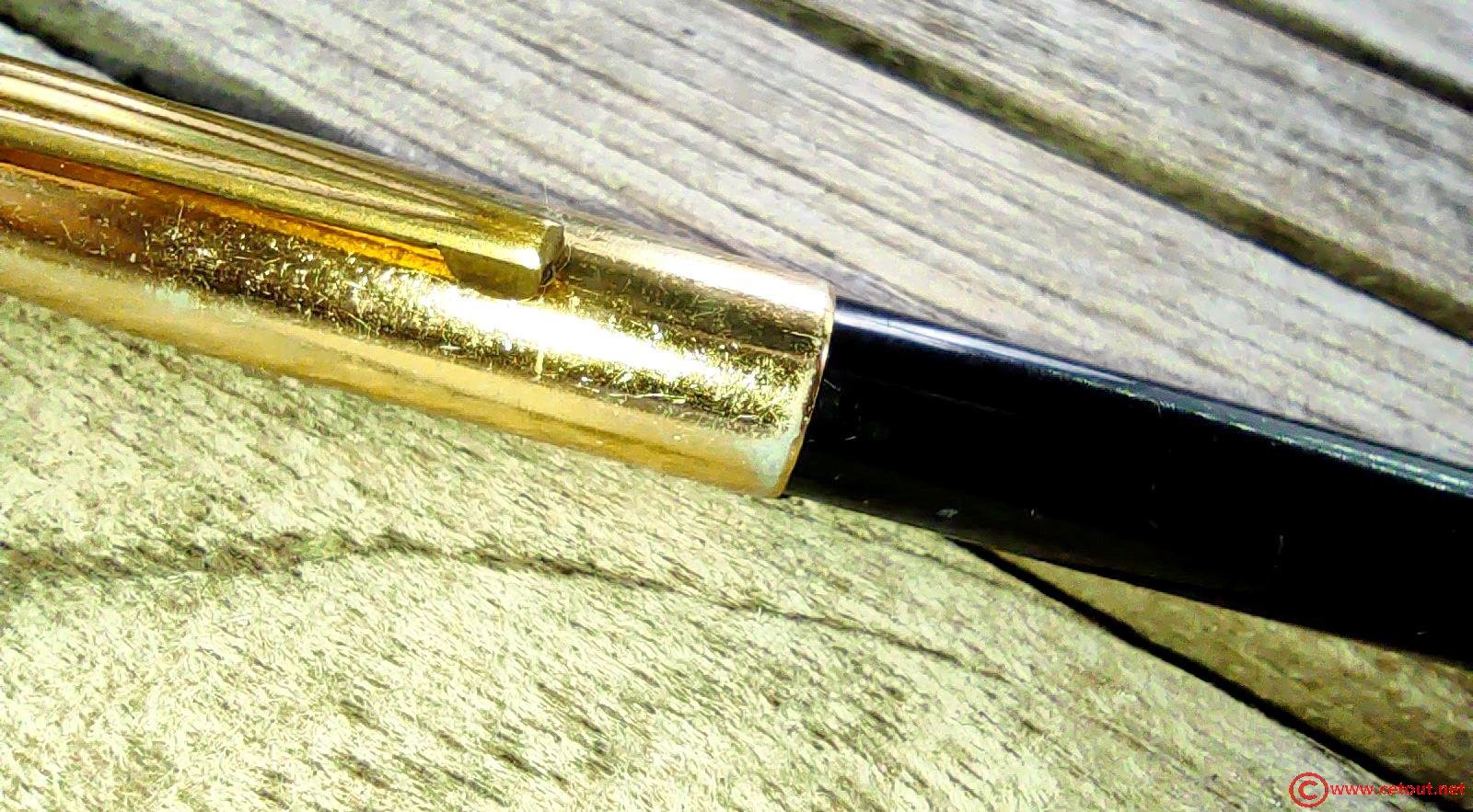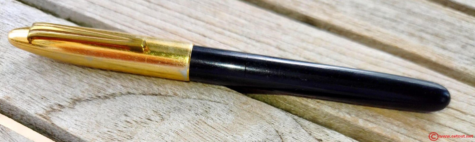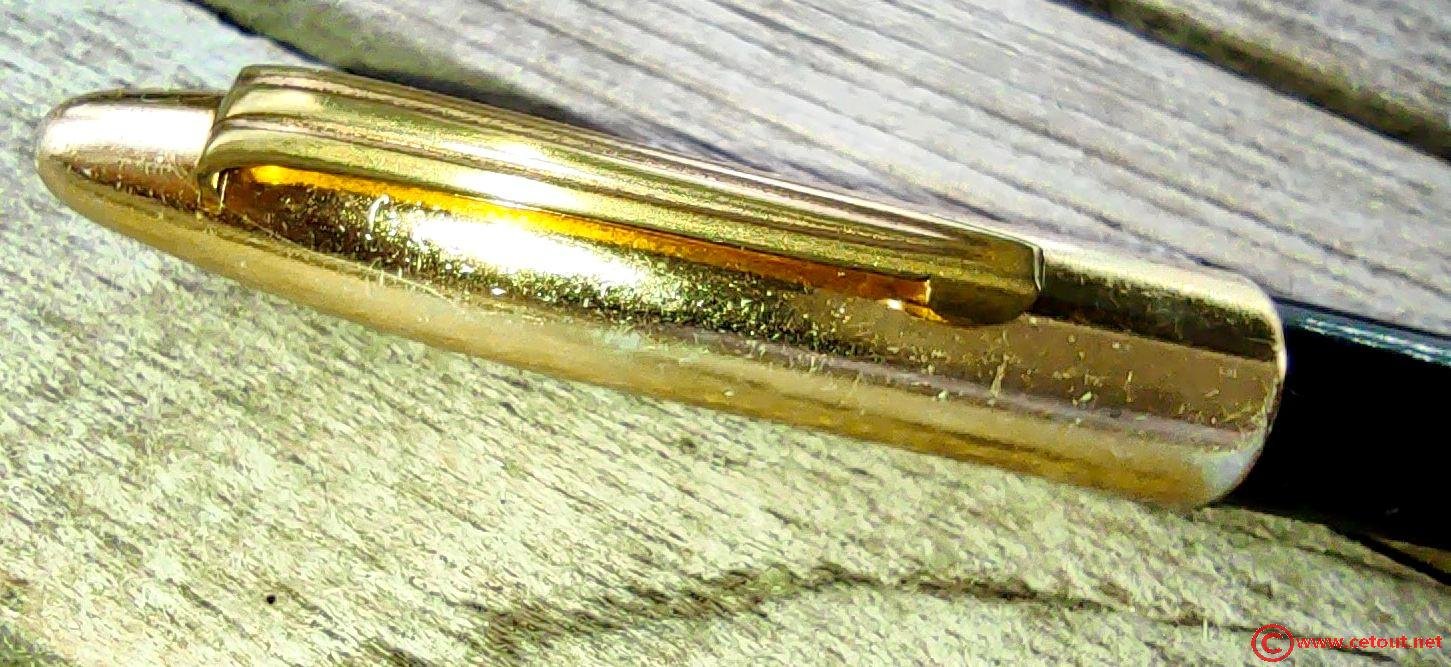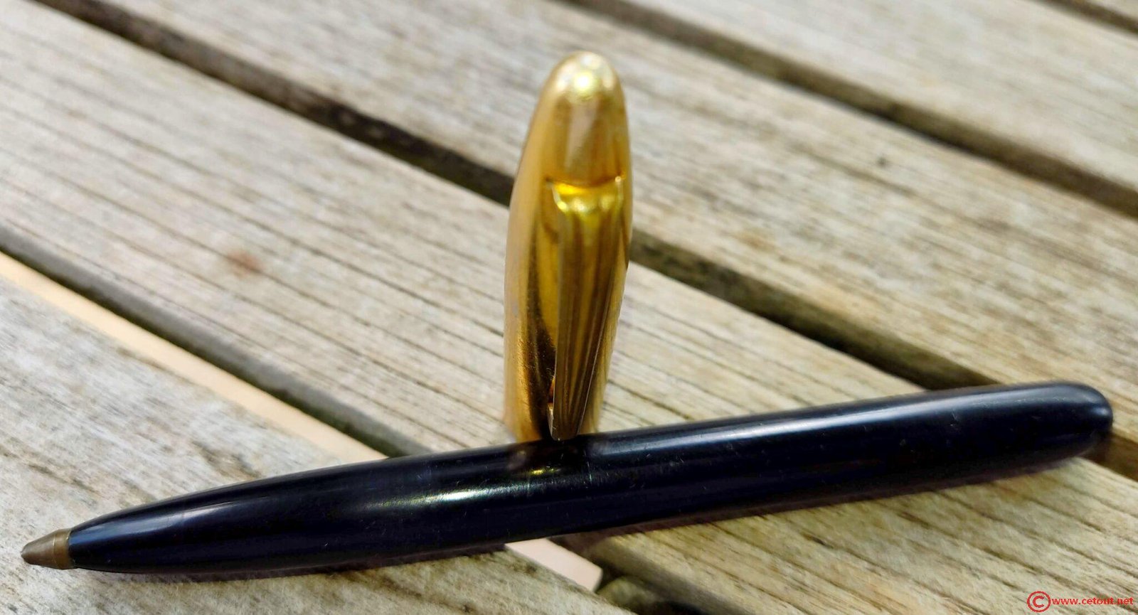 – Capuchon en plastique plaqué doré (avec usure légère). Clip métal doré – Bon état global.