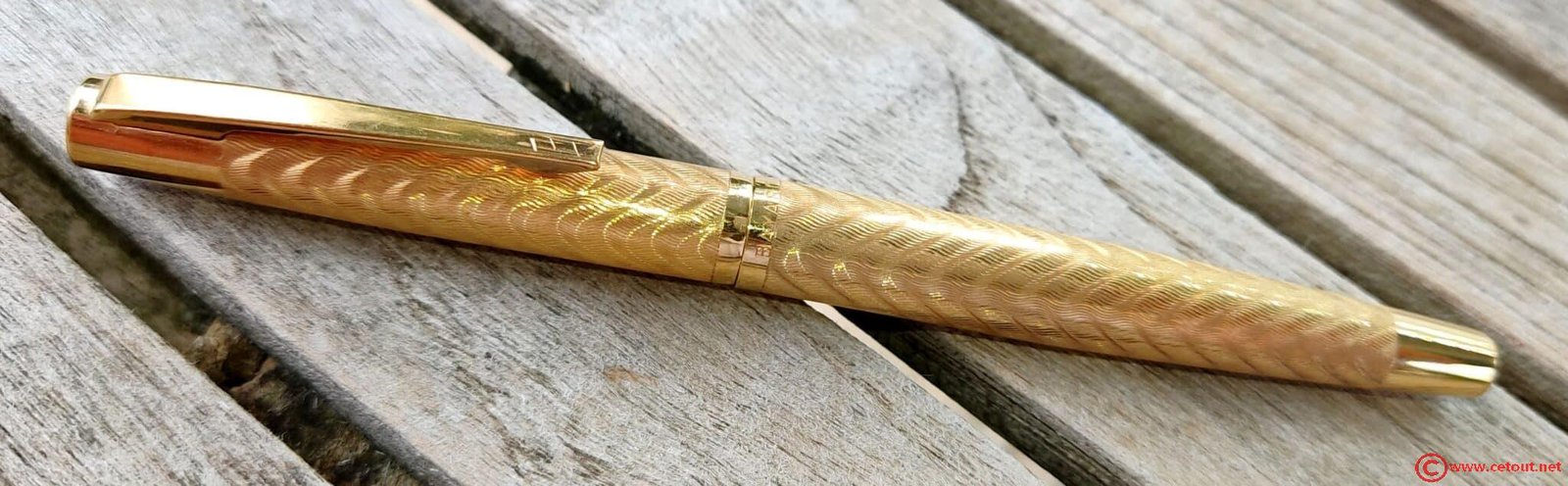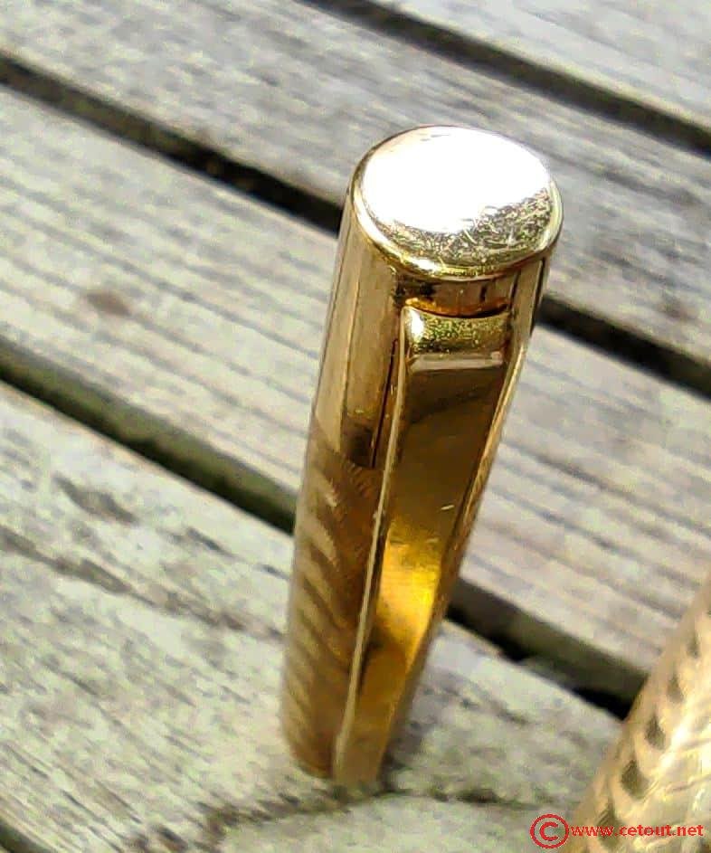 – Corps PLAQUE OR. Bague dorée en extrémité.