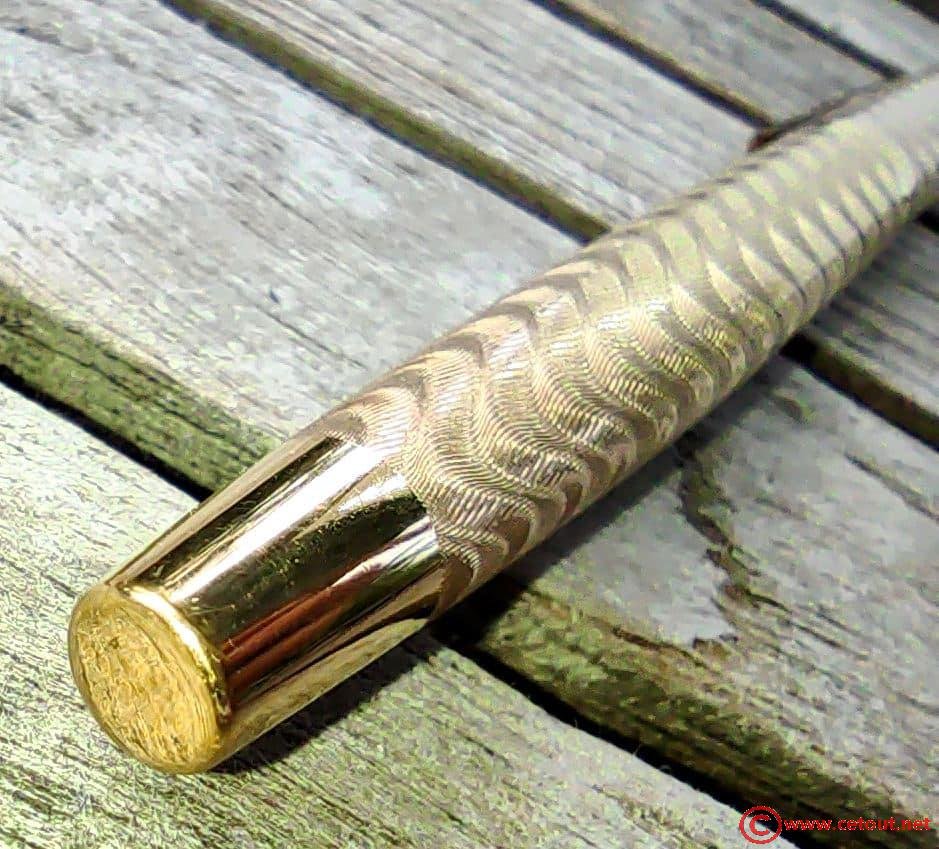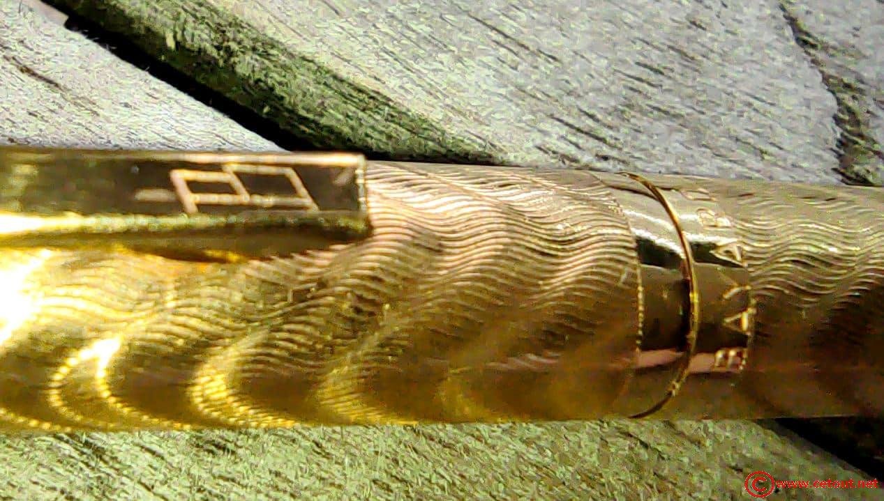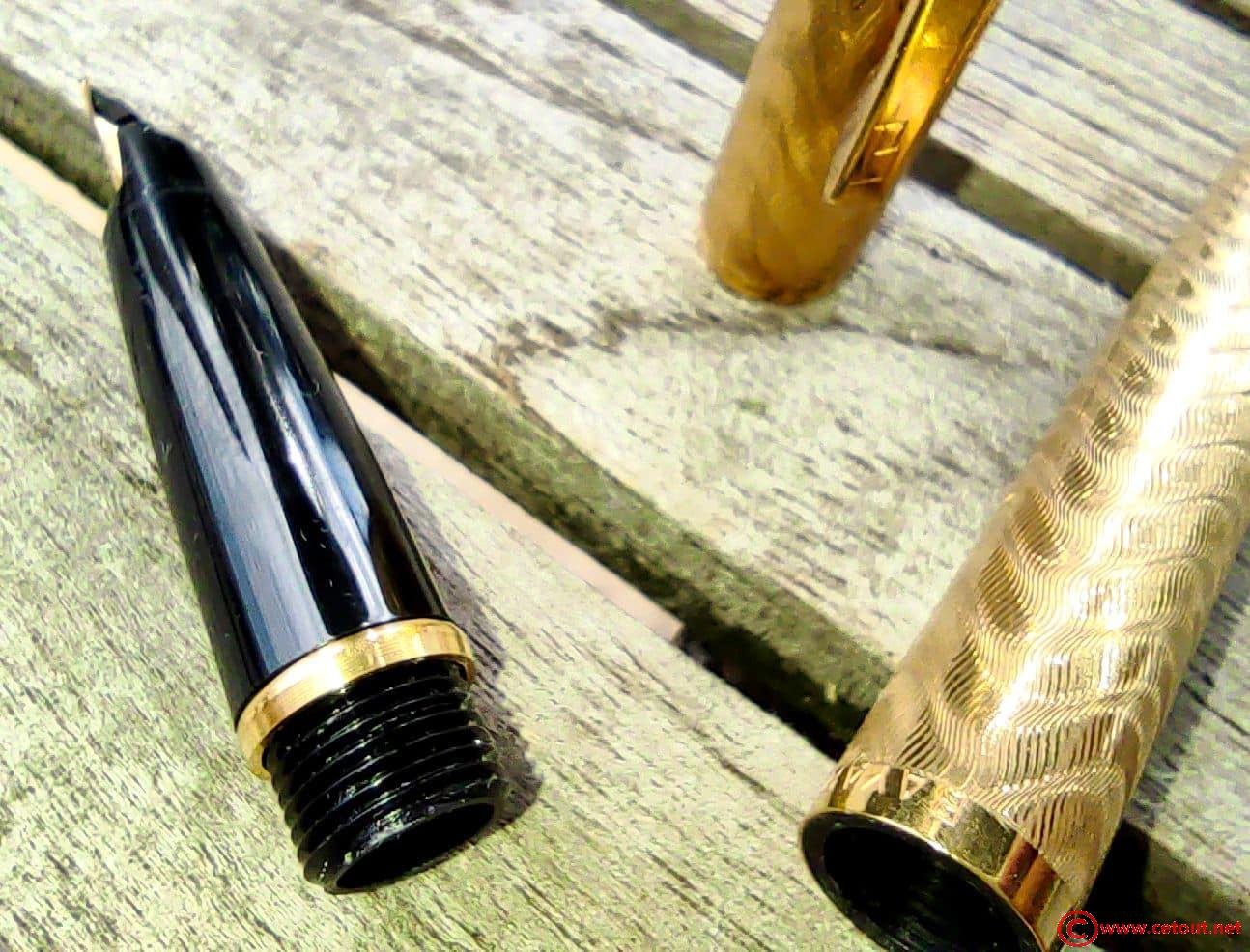 – Capuchon (intact) – PLAQUE OR – agrafe dorée avec un B stylisé. Bague dorée au sommet. Inscriptions sur la bague à la base du capuchon : « BAYARD»